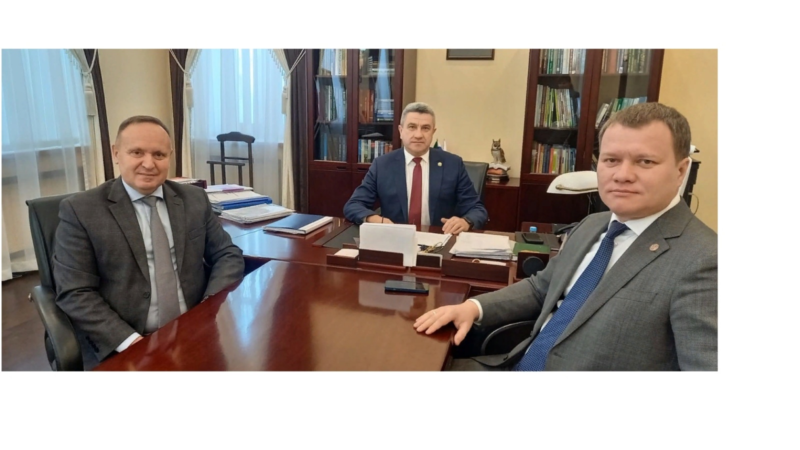 Гава района Радик Ислямов и начальник отдела образования Ильсур Садиков встретились с министром образования и науки Республики Татарстан Ильсуром Гараевичем Хадиуллиным.