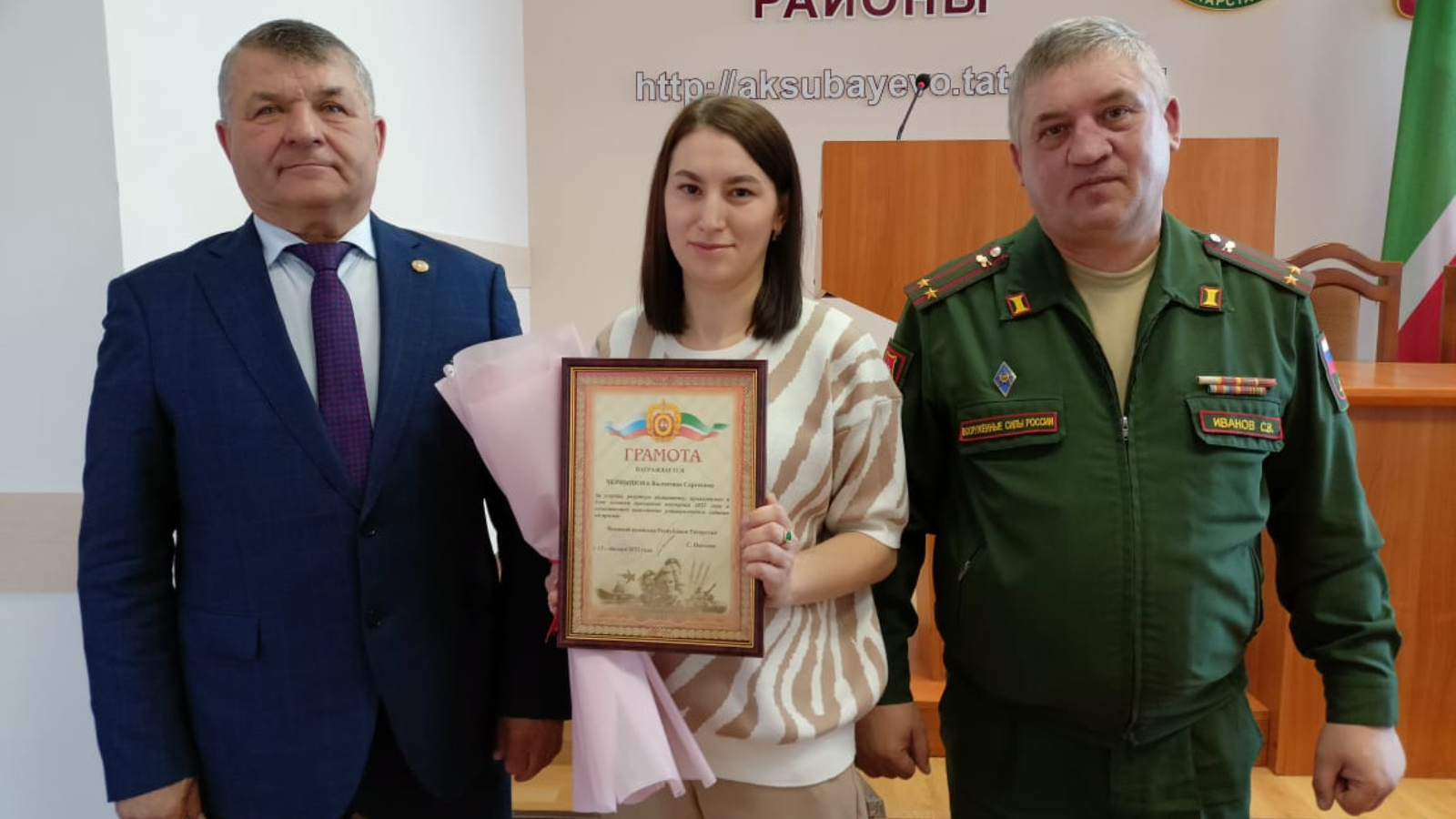За активную работу, проявленную в ходе осенней призывной кампании 2022 года, Почетной грамотой военного комиссариата Республики Татарстан награждена старший врач призывной комиссии Аксубаевского муниципального района Валентина Сергеевна Чернышева.