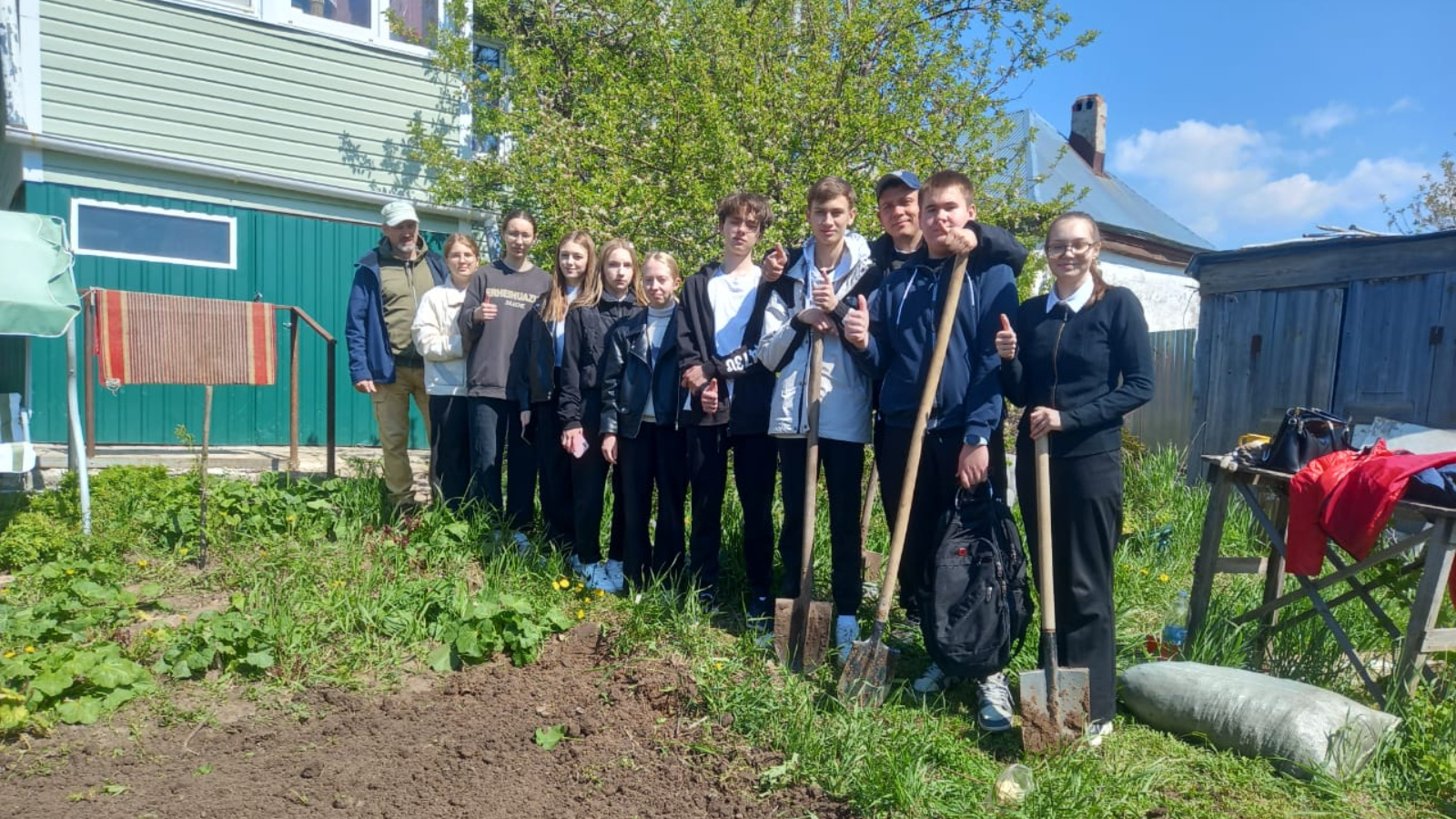 На одной из встреч в школе, ребята сами предложили ей свою помощь. И теперь - ранней весной они откапывают от снега дорожки у дома, позже приходят на огород, убирают его, копают грядки, помогают в посадке.