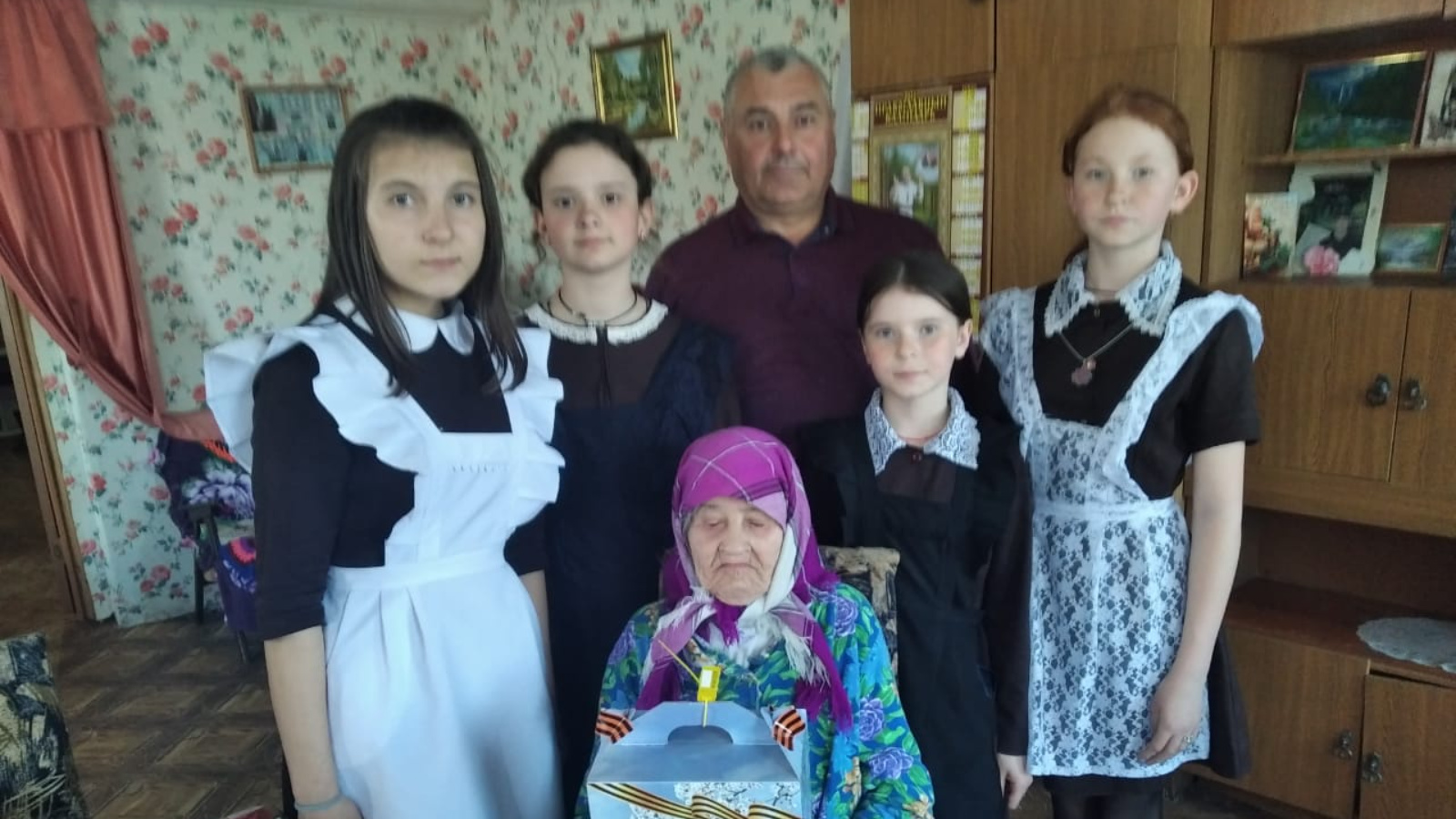 С поздравительной речью и подарком от Раиса Республики Татарстан приехали поздравить ветерана из Верхних Тархан Александру Трифоновну Инаходову начальник электрических райсетей Демагин Виктор Александрович и глава Бессоновского сельского поселения Врясов Юрий Анатольевич. Ученики вместе с Никитиной Раисой Васильевной, директором Верхнетарханского СДК, выразили благодарность за величайшую храбрость во время Великой Отечественной войны и пожелали крепкого здоровья.