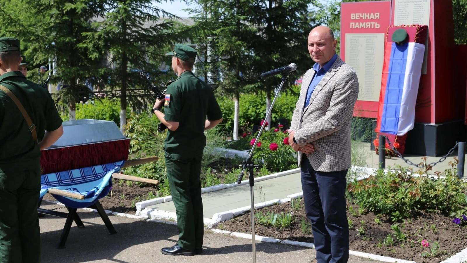 Сегодня в п. Комсомолец простились с рядовым Асламовым Русланом Рустамовичем, погибшим в зоне СВО при выполнении боевых задач.