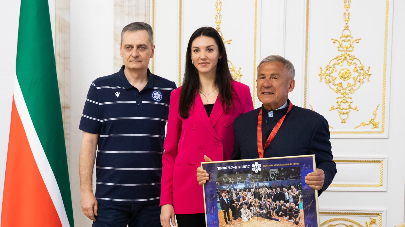 Коллектив волейбольного клуба «Динамо-Ак Барс» был удостоен Благодарности Раиса Республики Татарстан. В свою очередь капитан команды Анастасия Ануфриенко вручила Рустаму Минниханову памятную медаль. «Очень рада быть частью этой команды с большой историей. Спасибо вам за поддержку. Мы будем прикладывать все усилия для достижения дальнейших высоких результатов», - сказала она.
