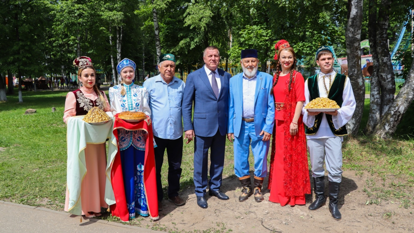 С центральной сцены парка им. В.Я. Степанова гостей и участников праздника также поприветствовали заместитель председателя Правительства Ивановской области Евгений Леонидович Нестеров, Глава города Иванова Владимир Николаевич Шарыпов, Председатель Ивановской городской Думы Александр Кузьмичев, председатель национально-культурной автономии татар Ивановской области Фярит Усманович Ляпин и Председатель Ивановской областной общественной организации «Союз десантников» Рафаэль Мусалимович Нугманов. Все они высказали много теплых слов в адрес делегации нашего района, поблагодарив за многолетнее плодотворное сотрудничество и вручили благодарственные письма Рамису Хатыповичу Сафиуллову и творческому коллективу Тетюшского муниципального района Республики Татарстан.
