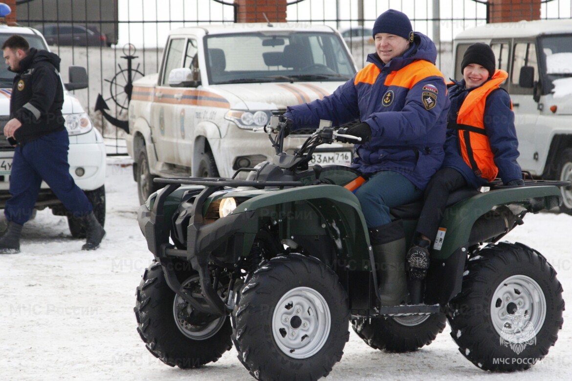 На час ежедневные помощники сотрудников МЧС в деле спасения превратились в веселый аттракцион для детей. Каждый желающий смог покататься на судне на воздушной подушке по Казанке, на снегоходе и квадроцикле.