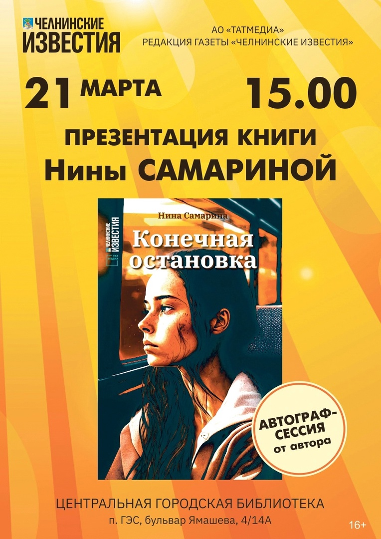 Наталия Гарипова – автор 12 повестей, заместитель главного редактора газеты «Челнинские известия», пишущая под псевдонимом Н. Самарина представит книгу «Конечная остановка».