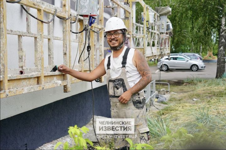 «Погода радует. Сегодня хочу максимально выложиться», – рассказал сегодня автор мурала «Челнинским известиям».