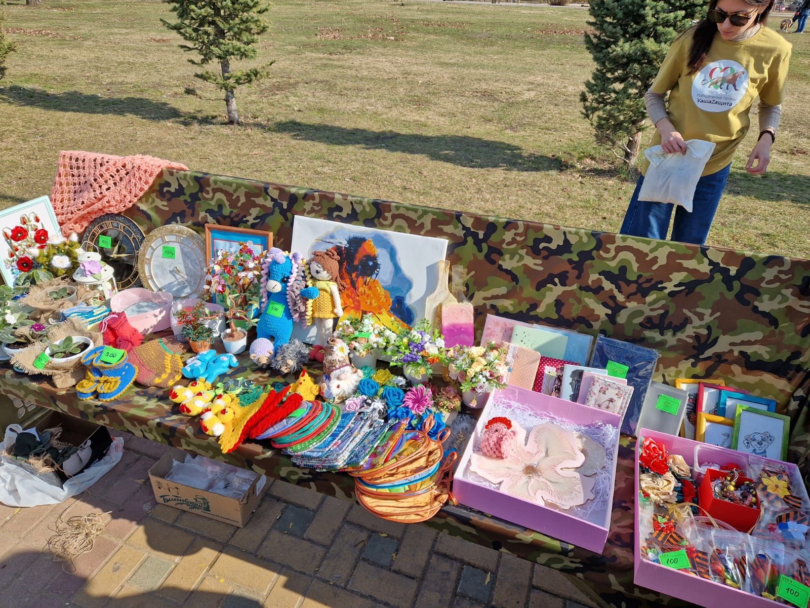 В Набережных Челнах мастерицы из цеха по плетению маскировочных сетей заработали на благотворительной ярмарке в парке Победы 30 тысяч рублей.