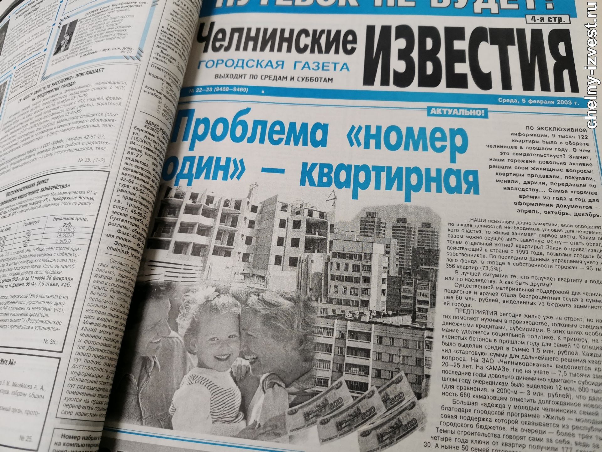 С таким заголовком на первой полосе вышли «Челнинские известия» 5 февраля 2003 года. В то время еще не было ипотеки, бесплатно квадратные метры уже не давали, а свое жилье иметь хотелось. Наша газета написала о том, где можно взять ссуду. Ее давал бюджетникам исполком, конечно, не всем подряд. На это было выделено 60 млн рублей. На ныне исчезнувшем заводе ЗЯБ всего 10 семей получили кредит в 1,5 млн рублей. На КАМАЗе очередникам выделили субсидии в 12,5 млн рублей, 680 заводчан получили ключи от квартир. Это с учетом того, что в то время на КАМАЗе работало около 40 тысяч человек.