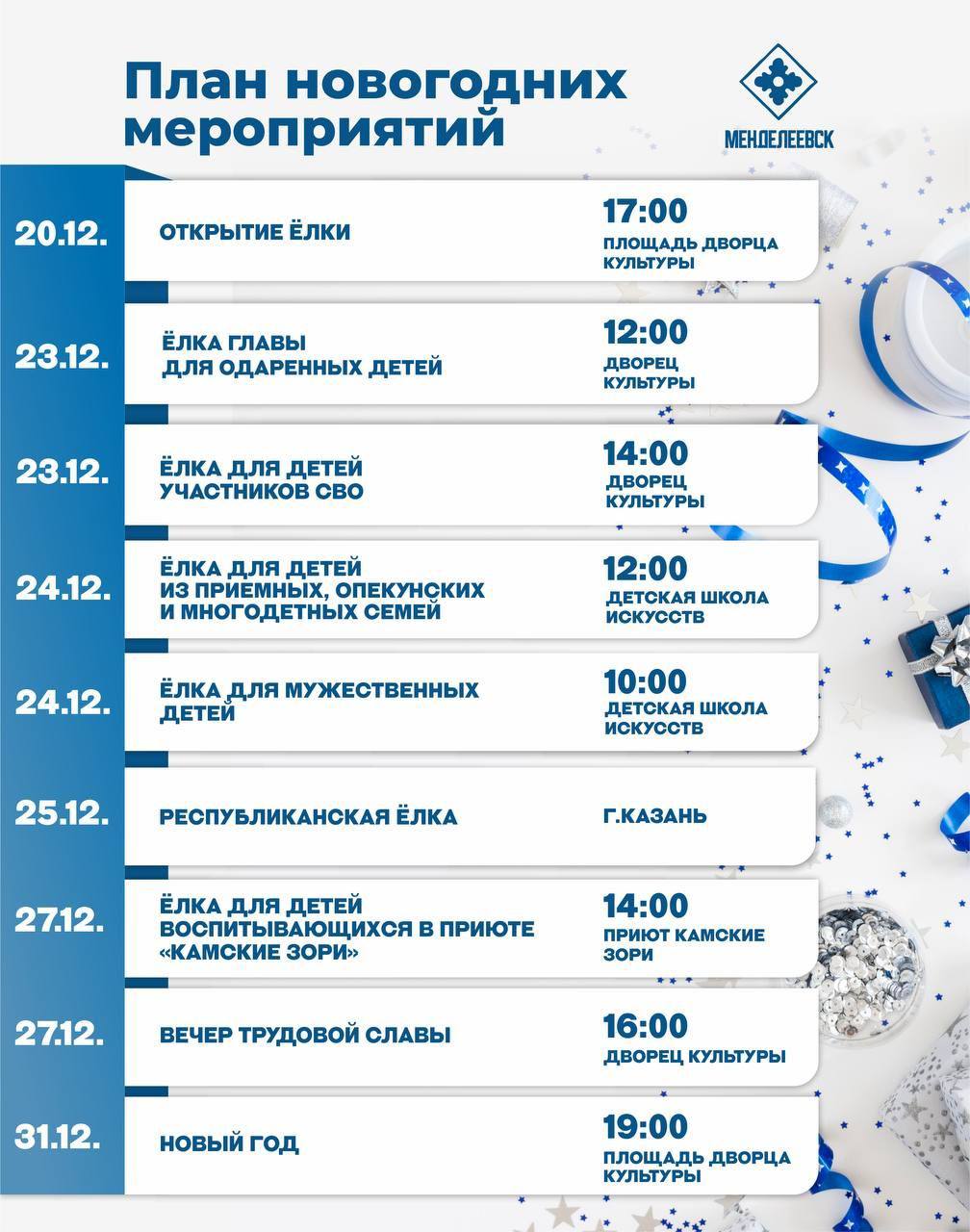 Приглашаем менделеевцев на новогодние мероприятия