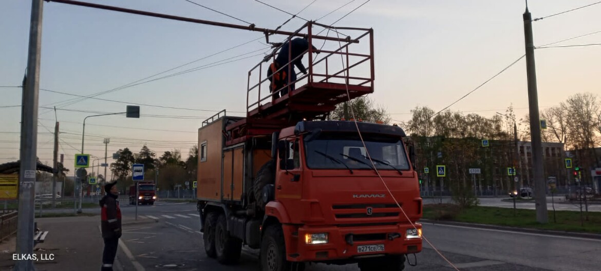 По причине строительства трехуровневой развязки на Горьковском шоссе, чтобы троллейбусный маршрут №1 работал бесперебойно, сотрудники «Метроэлектротранса» переносят контактную сеть с улицы Восстания на улицу Кулахметова.