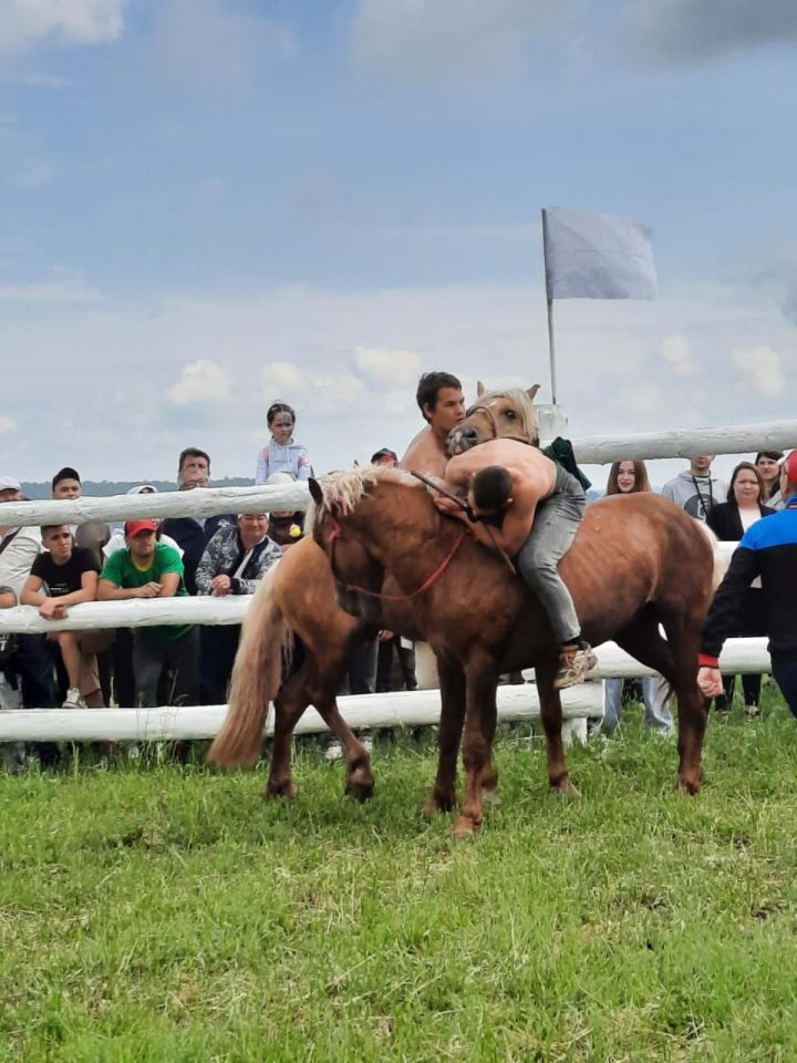 В Лениногорске на Сабантуе в соревнованиях по борьбе на лошадях - Аударыш - определились победители