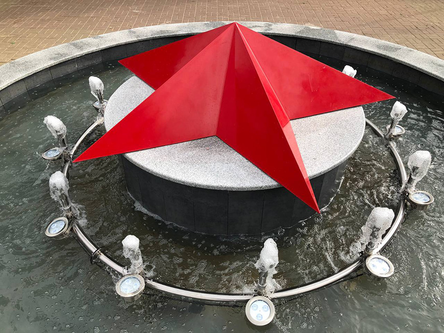 (Город Казань KZN.RU, 14 августа). В сквере Славы на ул.Зорге в Казани после капитального ремонта заработал фонтан. В чаше установили конструкцию с 12 струями воды и светильниками. Вечером фонтан переливается разными цветами.Как сообщили в Комитете внешнего благоустройства, рабочие заменили все механизмы фонтана, провели гидроизоляцию, выполнили облицовку керамогранитом, а снаружи уложили гранитную плитку. В центре конструкции специалисты установили новую звезду.