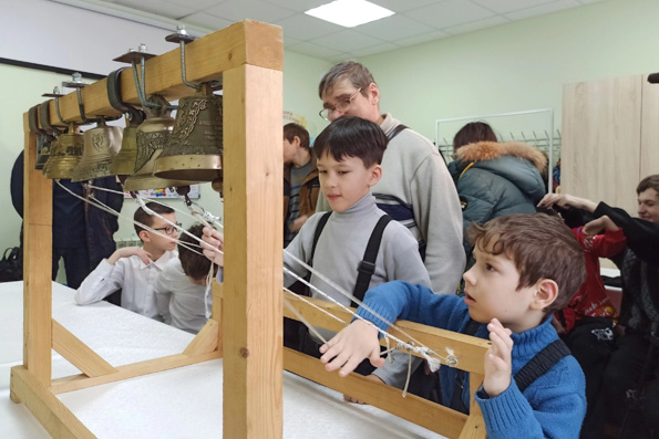 Леонид Лебедев рассказал ученикам о технике колокольного звона. Затем все желающие попробовали себя в качестве звонаря. В завершение занятия ученики исполнили гармоничный звон.