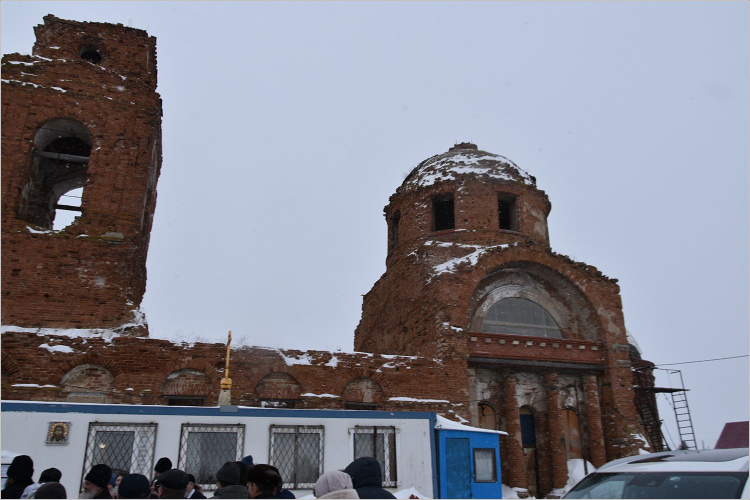 Затем владыка ознакомился с ходом восстановительных работ в храме Богоявления Господня. Работы еще много, храм находится в руинированном состоянии.