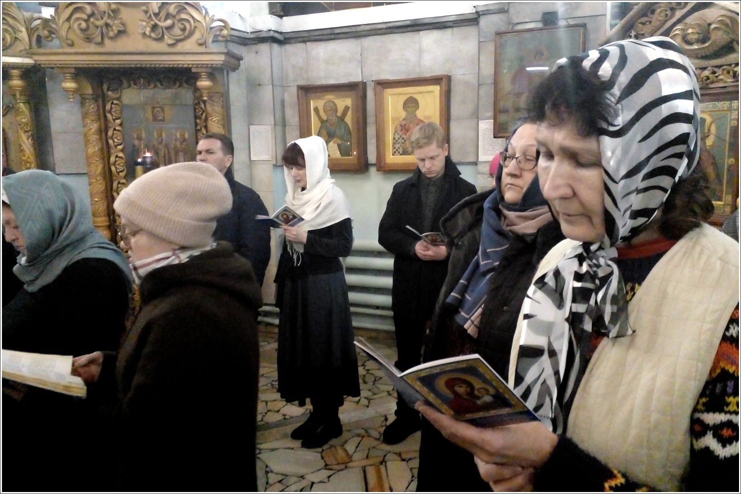 Чтение акафиста проходит еженедельно по понедельникам в 18:30, по окончании вечерней службы перед старинной иконой Царицы Небесной. Завершается акафист совместной молитвой о мире и о здравии военнослужащих Российской армии.
