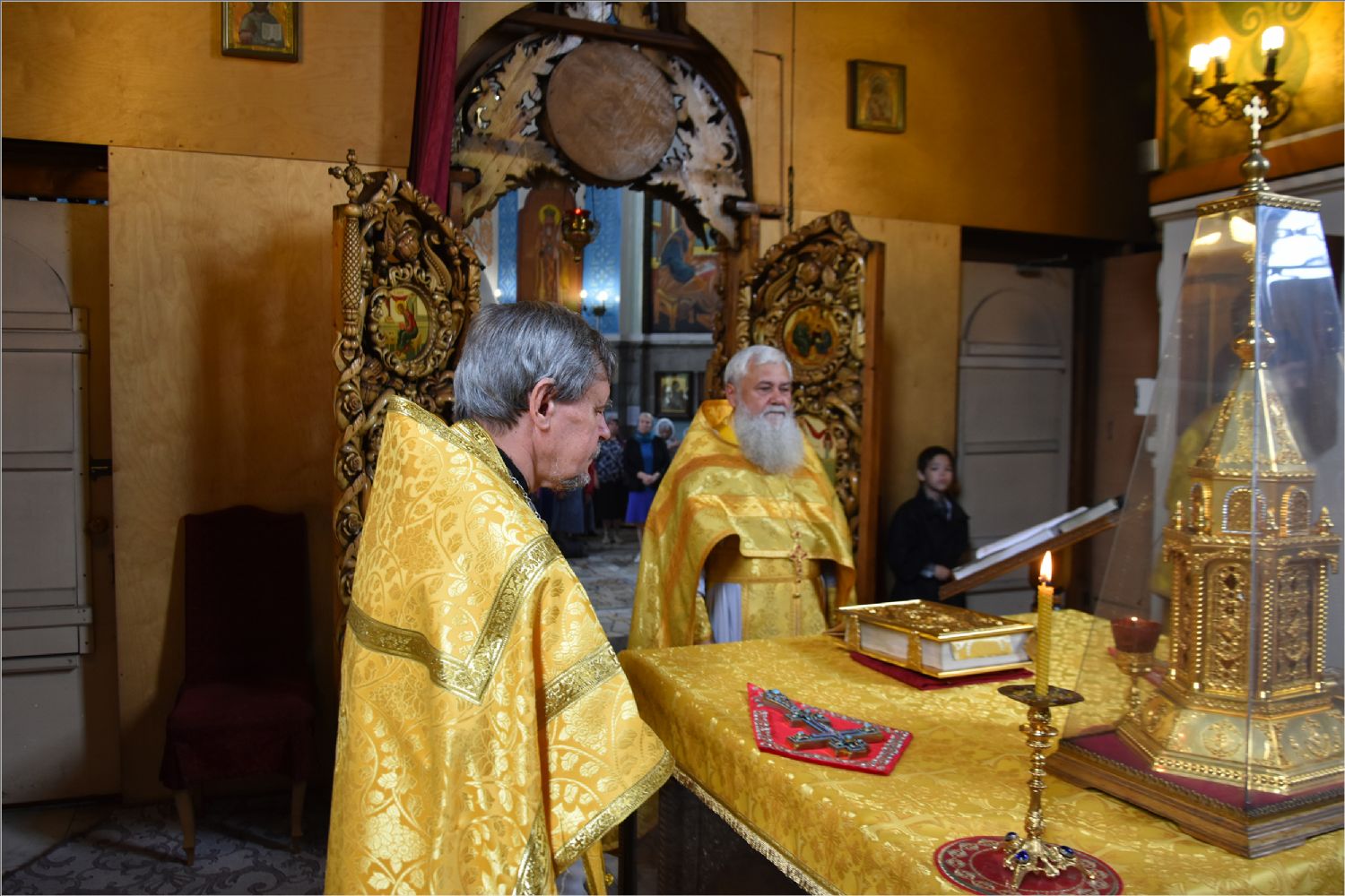 Раннюю литургию в соборе в день памяти святителя Иова возглавил клирик прихода протоиерей Александр Филькин в сослужении настоятеля храма в честь Архангела Михаила села Круглое Поле иерея Виктора Кобзова, который после службы обратился к верующим со словами проповеди о необходимости максимально потрудиться над своей духовной жизнью в оставшиеся дни Петрова поста: