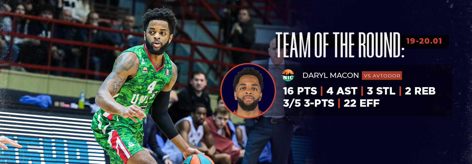 Разыгрывающий УНИКСа Дэрил МЭЙКОН включен в символическую пятерку 22-го тура Единой Лиги ВТБ. Поздравляем!