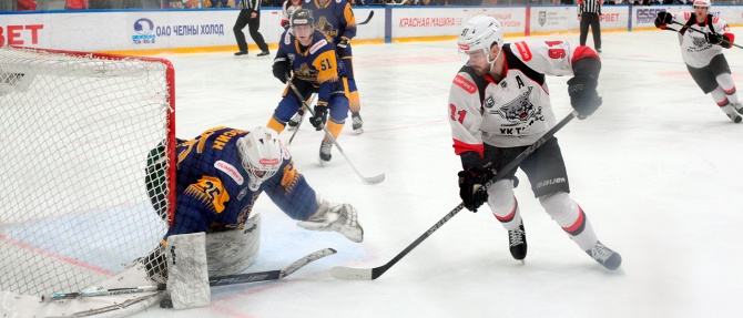 Но всё не заладилось уже в первом периоде, когда с разницей в полторы минуты шайба дважды побывала в сетке ворот — к экватору встречи разница достигла в 5 шайб, причем после четвертой Владимир Мосин сменил Кирилла Устименко на последнем рубеже. Челнинцам, правда, удалось отыграть один гол, усилиями Андрея Ряшенцева и Булата Миннеханова, но на большее во второй игровом отрезке не хватило времени, 1:5.