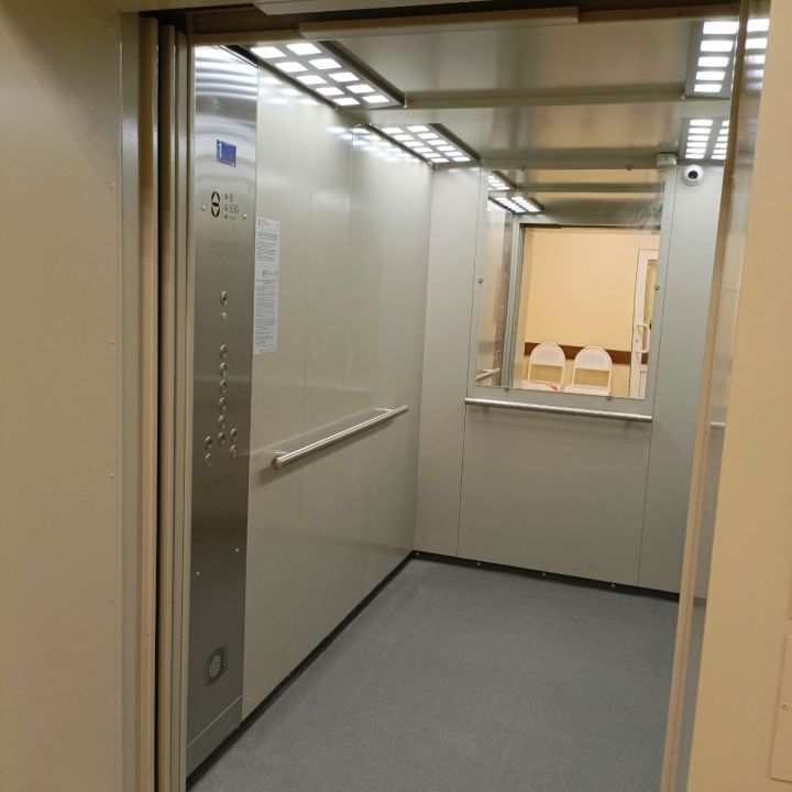 Новый лифт с автоматическими дверями управляется без обслуживающего персонала. Просторный, светлый, красивый, он соответствует всем современным требованиям, оснащен видеокамерой слежения.