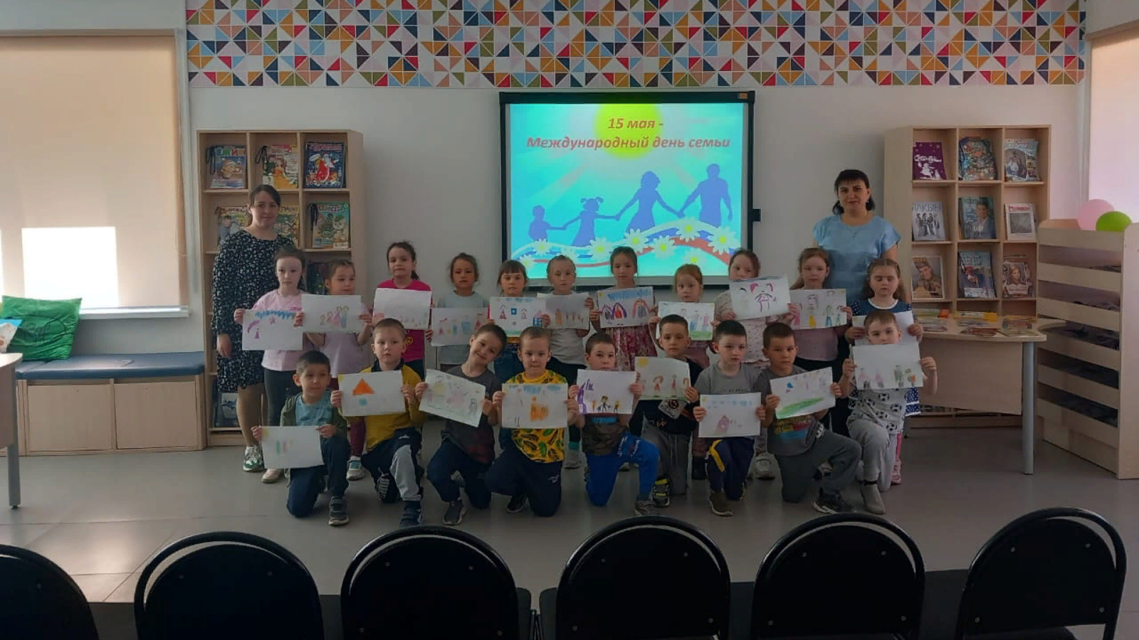 15 мая в Международный день семьи библиотекарь центральной детской библиотеки имени С.В.Михалкова Закирова Фирдания для детей старшей группы детского сада «Ручеек» провела игровую программу «Про семью дружную, всем такую нужную». Она рассказала детям об истоках и традициях этого праздника. Ребята приняли участие в разных конкурсах и играх, отгадали загадки, нарисовали рисунки. На каждом рисунке у ребят получилась дружная и весёлая семья. Мероприятие завершилось обзором книг и просмотром мультфильмов.