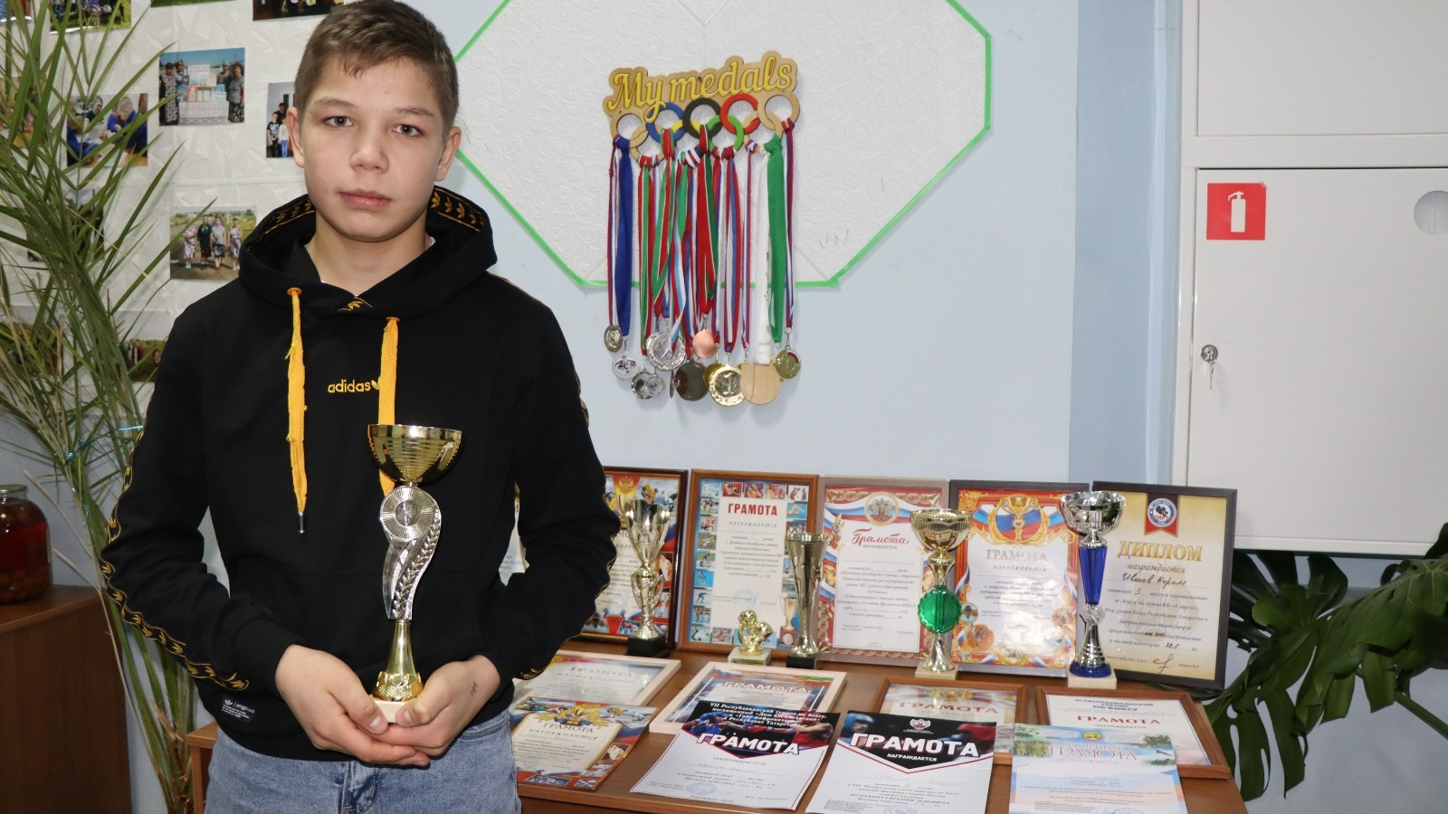 Помимо школьных уроков и тренировок, он успевает помогать и по хозяйству родителям, бабушке и дедушке. А физический труд придает юному спортсмену сил и выносливости.
