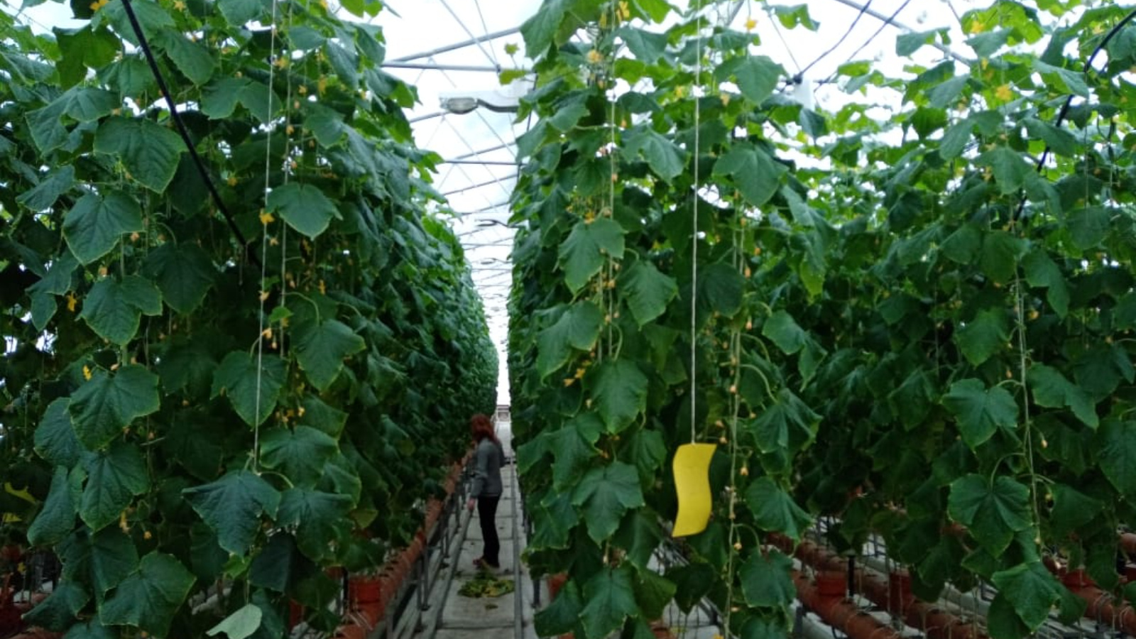 Общая площадь теплицы составляет 2040 м2. Температурный режим, освещение и подача полива работает в автоматизированном режиме.