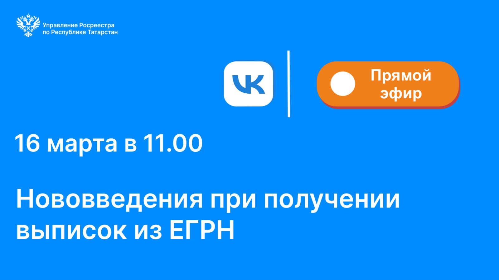 Присоединиться к прямой трансляции можно будет в официальной группе Управления Росреестра по Республике Татарстан в Вконтакте https://vk.com/rosreestr16. Свои вопросы вы можете уже сейчас прислать к нам в мессенджер.