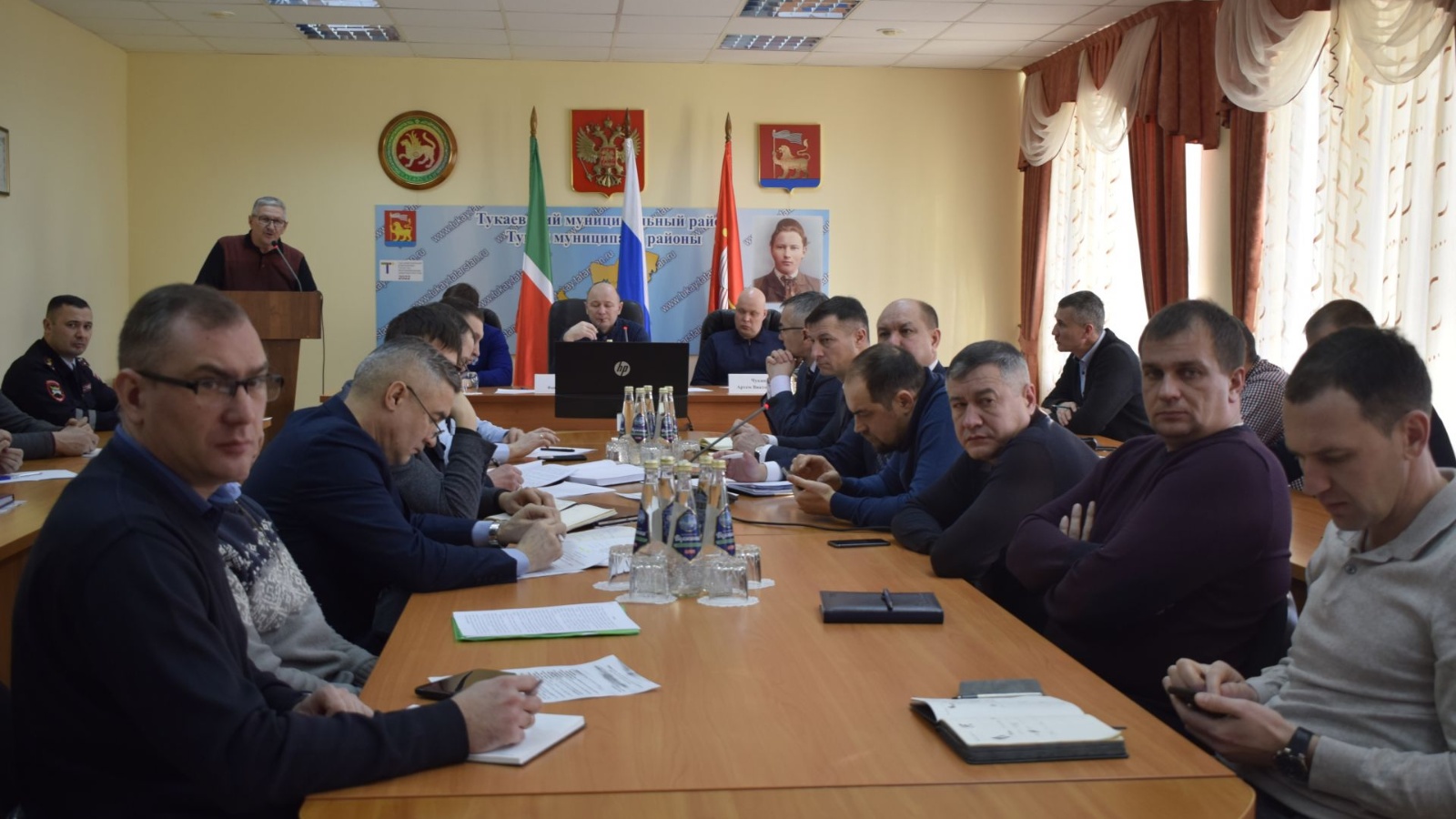 На прошлой неделе в малом зале администрации района состоялось заседание по вопросу обеспечения безопасности дорожного движения на дорогах Тукаевского района.В нем приняли участие руководители района и республики, руководители предприятий и организаций, осуществляющих ремонт и благоустройство дорог, руководители и представители надзорных ведомств. Также на мероприятие были приглашены главы Бурдинского, Князевского, Нижнесуыксинского, Комсомольского, Иштеряковского сельских поселений.