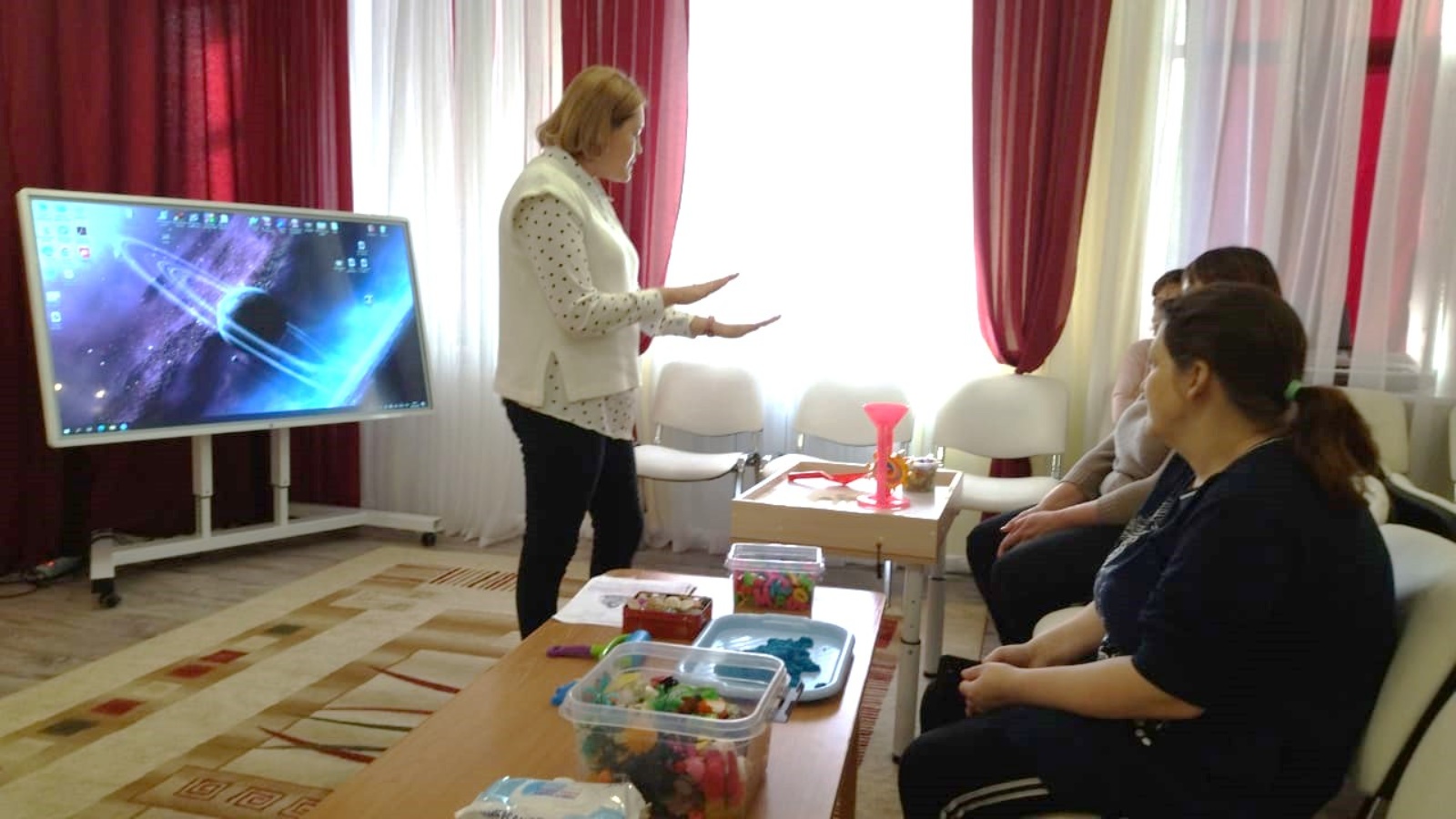 На встрече прозвучало много интересной и полезной информации. Так, педагог-психолог Альбина Иркагалеева провела интересный тренинг на снятие эмоционального напряжения с помощью песочной терапии. Социальный педагог Ирина Вдовина рассказала о развивающих интерактивных играх и посоветовала безопасные сайты, где дети могут с пользой провести время. Медсестра Наталья Нурмухаметова напомнила основные правила профилактики гриппа и ОРВИ.
