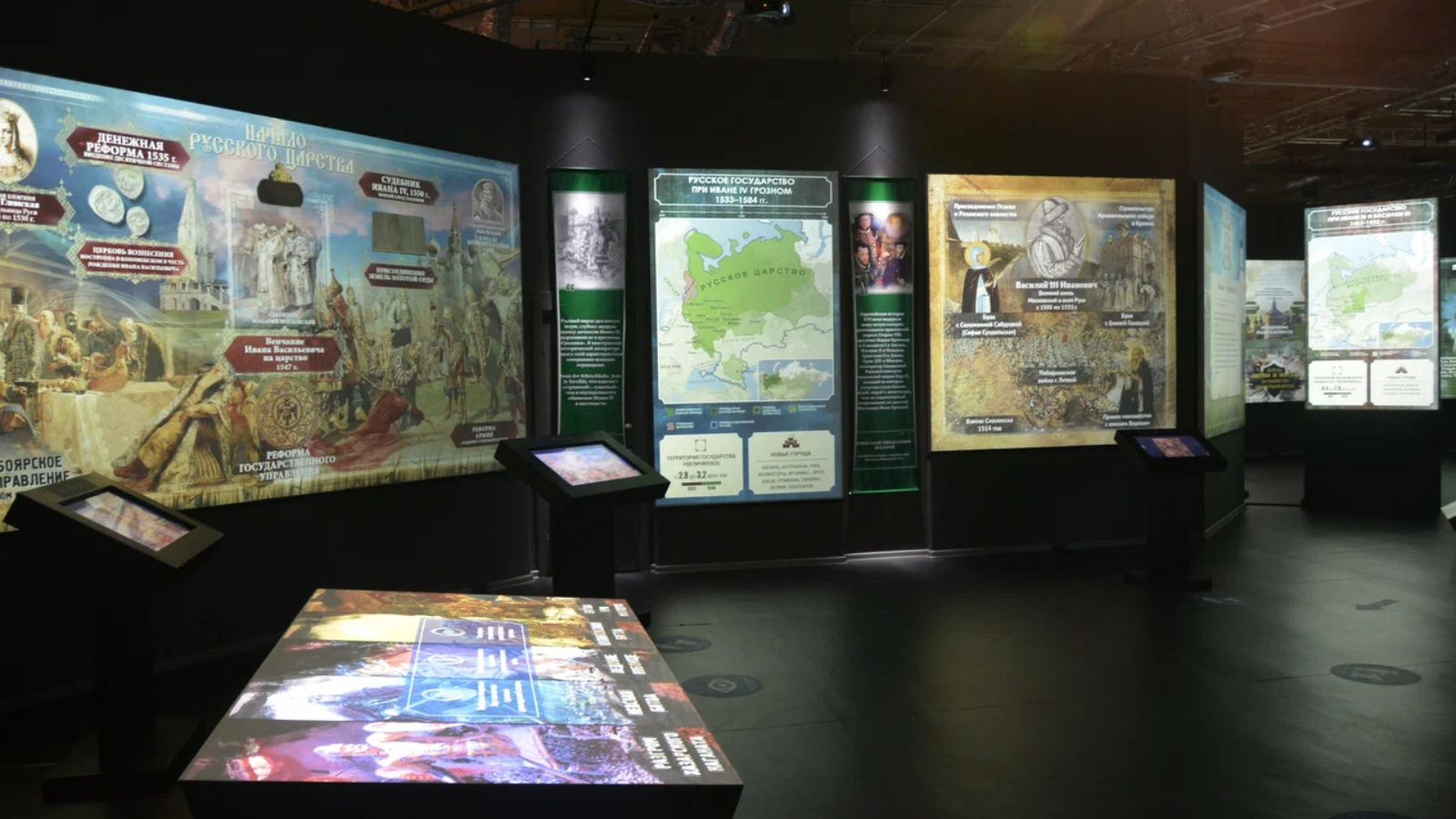 В парке функционируют 5 постоянных экспозиций: «Рюриковичи», «Романовы», «От великих потрясений к Великой победе», «Россия – моя история», «Страницы истории Татарстана». Информация охватывает период с древних времен до наших дней и представлена с помощью самого современного оборудования: сенсорных столов и экранов, интерактивных коллажей, проекторов и планшетных компьютеров.
