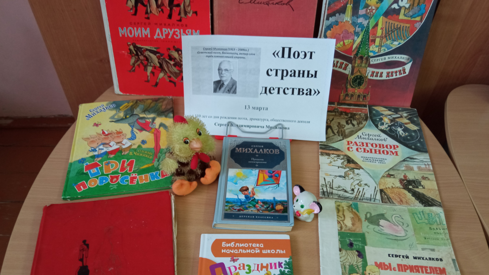 10 марта в Тюлячинской детской библиотеке, для учащихся младших и средних классов, была оформлена книжная выставка «Поэт страны детства», посвященная 110 – летию со дня рождения Сергея Михалкова. Читатели познакомились с творчеством замечательного поэта. Представленные книги рассказали им о том, что Сергей Владимирович работал в разных жанрах: писал стихи, пьесы, сценарии для взрослых и детей, песни, сатиру, статьи, заметки и является автором текстов гимнов Советского союза и России.