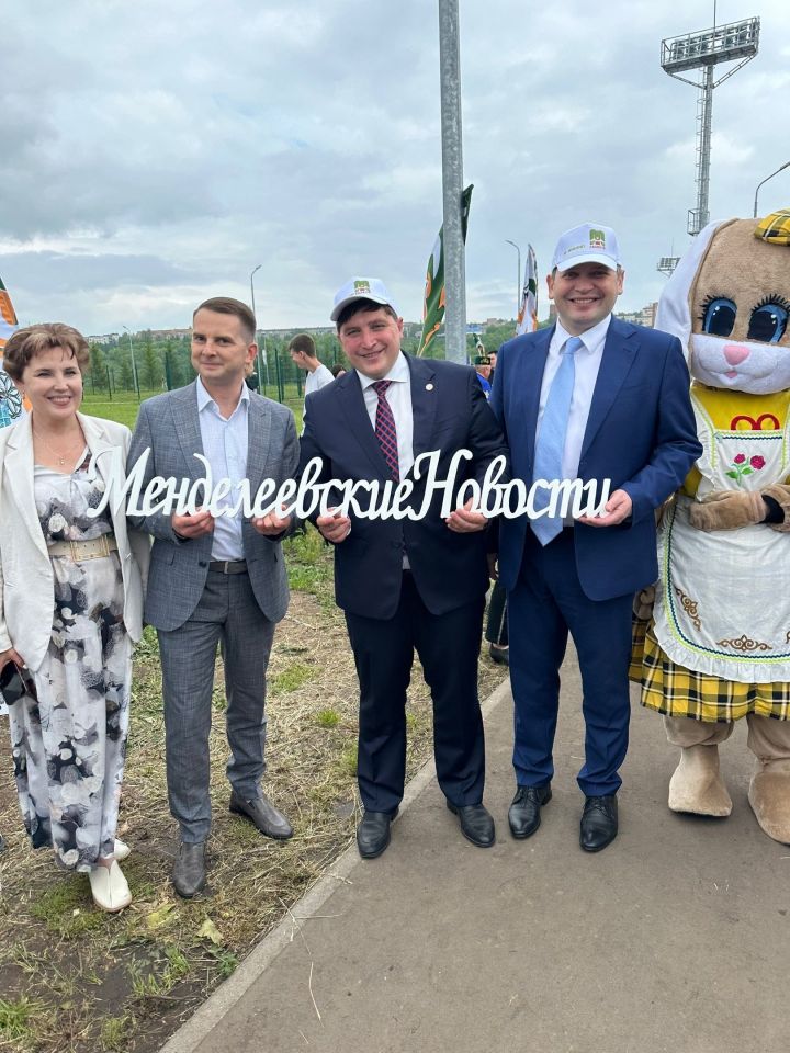 Глава района Радмир Беляев и депутат Госдумы РФ Ярослав Нилов осмотрели национальные подворья и сделали фото на память на фотозоне «Менделеевских новостей»