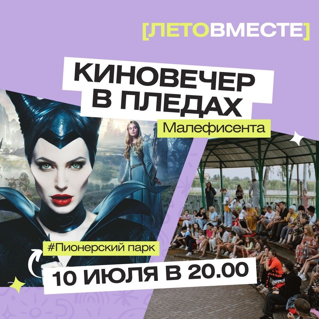 В рамках проекта "Лето вместе" пройдёт киновечер в пледах. Елабужан и гостей города ждёт фэнтезийный фильм — "Малефисента". Приглашаем всех окунутся в волшебный мир сказки и насладится игрой талантливых актеров.