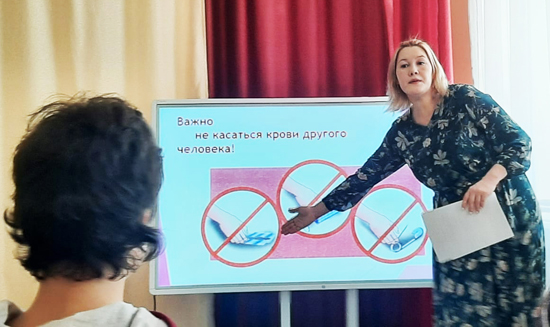 В Бугульминском реабилитационном центре для детей и подростков с ограниченными возможностями «Возрождение» педагог-психолог Альбина Иркагалеева провела тренинг с подростками по профилактике заболевания ВИЧ/СПИД «Азбука защиты».